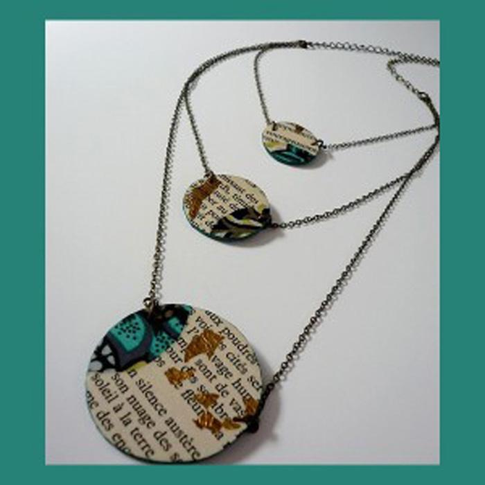 Bijoux fantaisie ultra légers, les bijoux d’Audrey sont réalisés à la main à partir de collages de papiers ou tissus originaux sur du carton bois. Ce sont des créations raffinées et délicates, très agréables à porter !