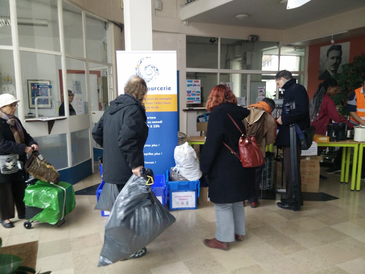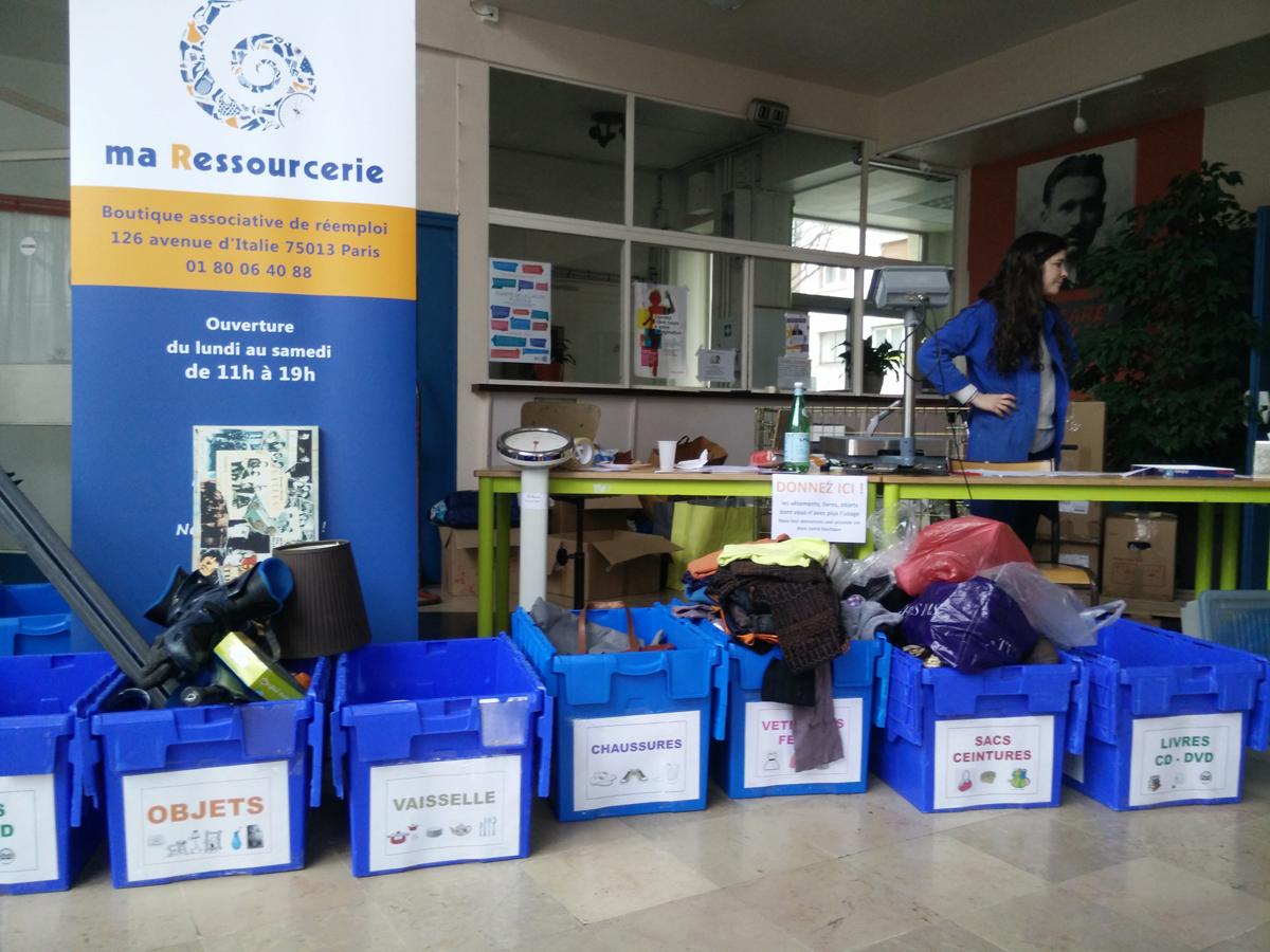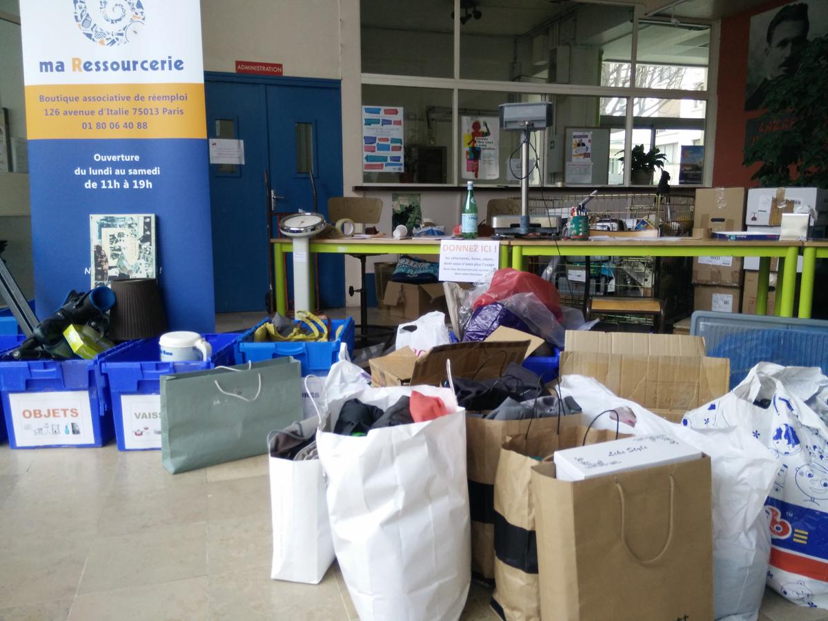 Cette journée de collecte éphémère au Lycée Lazare Ponticelli, dans le quartier de la place de Rungis (13e), a été un énorme succès avec plus de 55 donateurs qui sont venus apporter 600 kg d’objets du quotidien dont ils n’avaient plus l’usage, en seulement quatre heures : des vêtements, chaussures, linge de maison et accessoires ; des livres, CD, DVD, de la vaisselle, des jouets et des objets décoratifs.