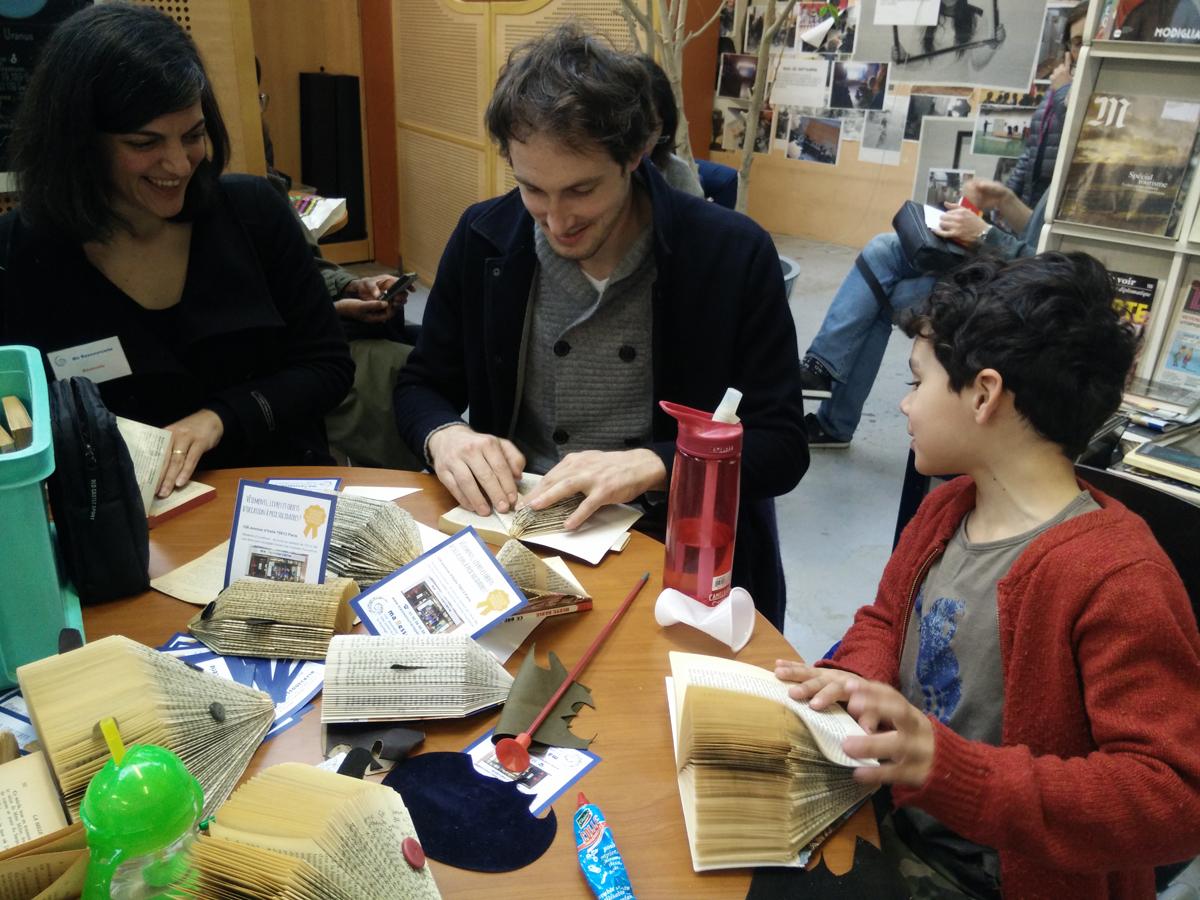Pour faire passer cette attente de façon ludique, les bénévoles de Ma Ressourcerie proposaient un atelier de récup-créative consistant à fabriquer un livre-hérisson. Plus de 25 personnes y ont participé, petits et grands !