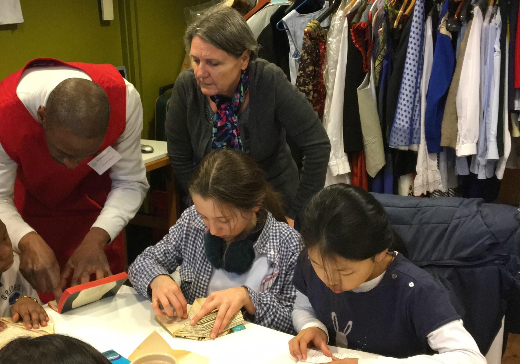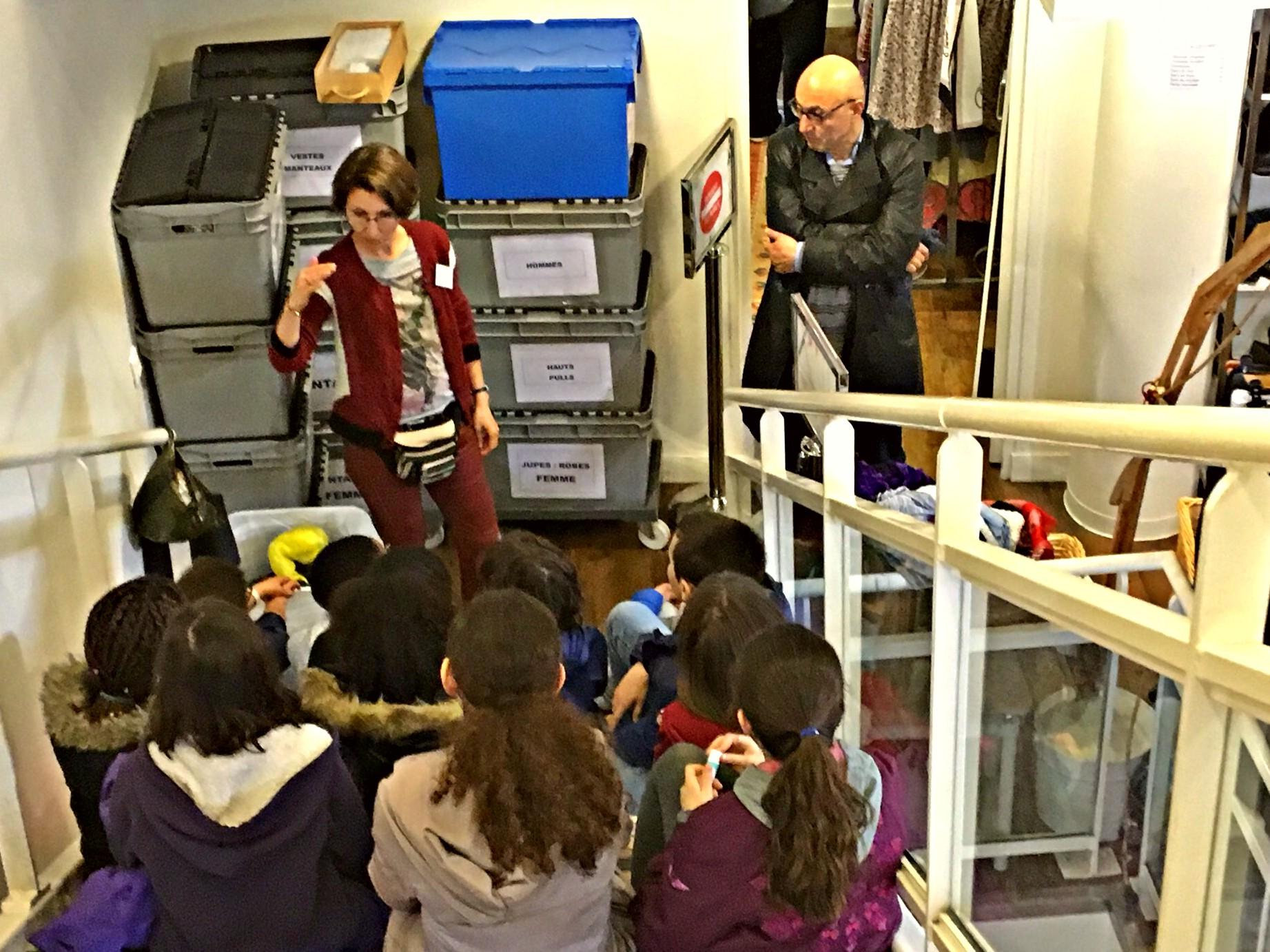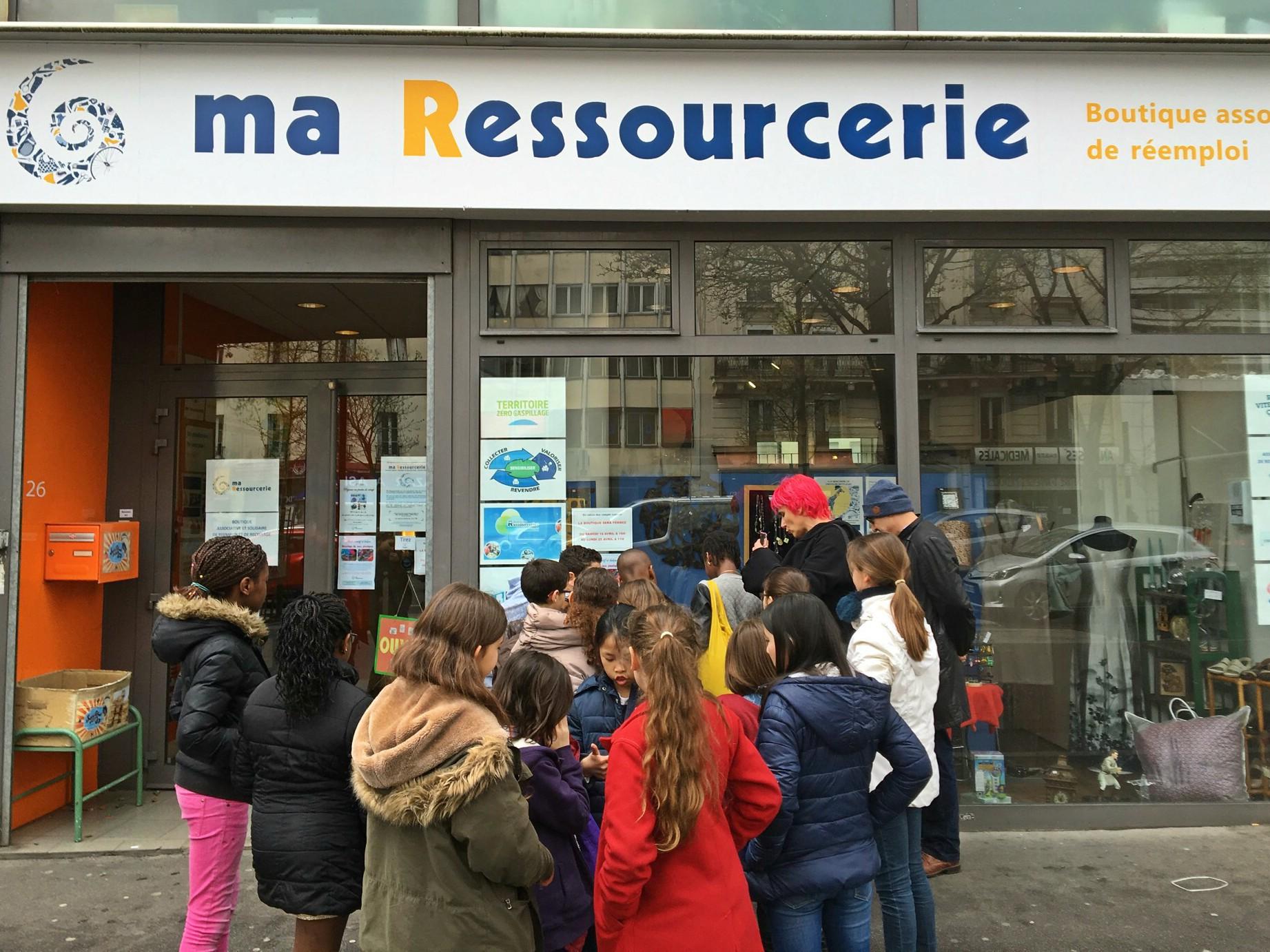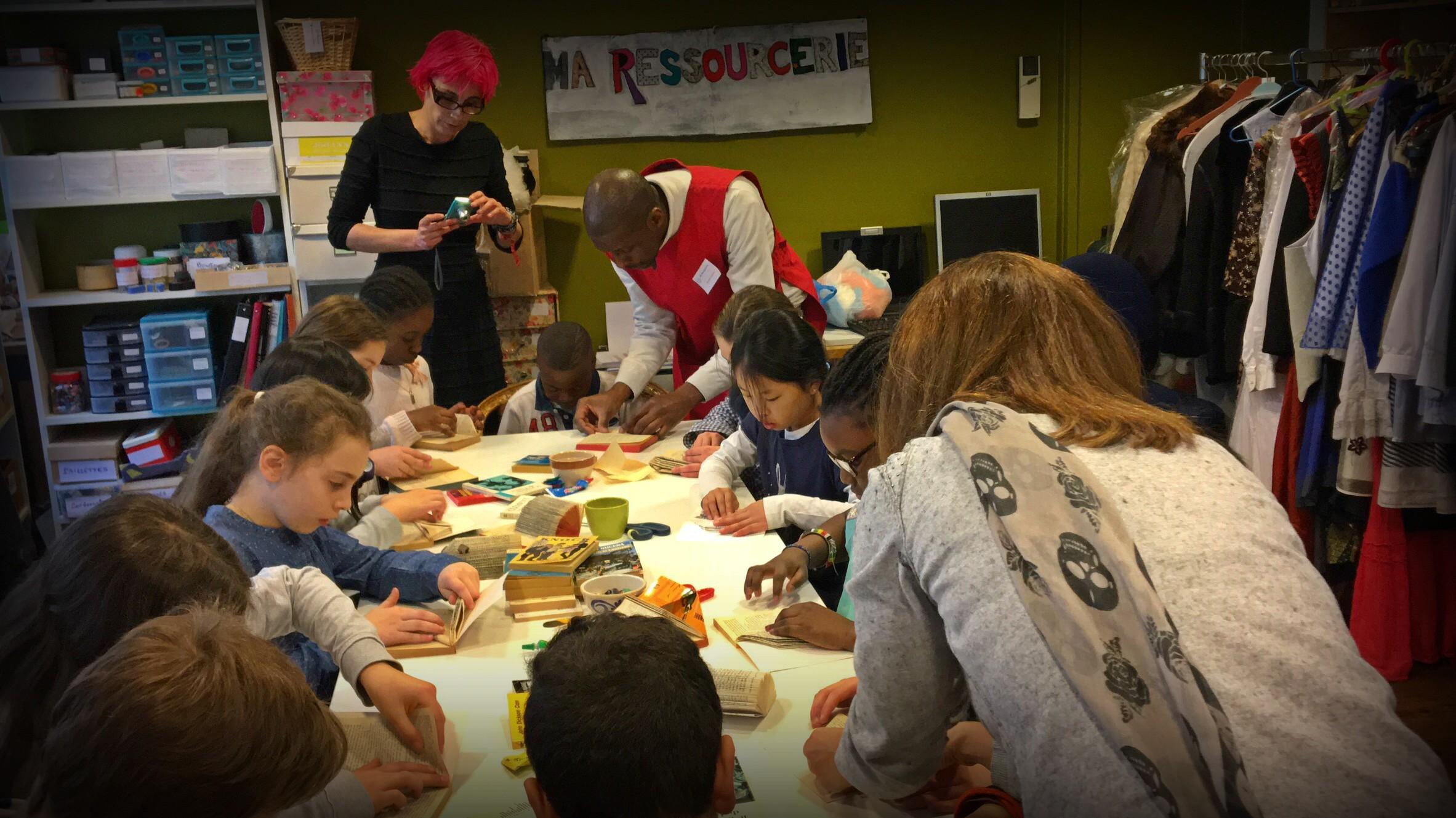 Une classe de CM2 de l’école primaire Dunois à Paris 13e a visité la ressourcerie et participé à un atelier de récup’créative lundi 11 avril 2016, accompagnée de leur maitresse, de la directrice de l’école et de trois parents. Beaucoup d’enfants étaient déjà bien informés de l’activité de l’association et de l’intérêt de ré-utiliser les objets pour limiter le gaspillage et la pollution.